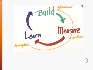 The document outlines a structured schedule for a startup development program, highlighting key topics for weekly sessions and emphasizing the importance of customer development through iterative experiments. It stresses the need for startups to understand their riskiest assumptions and validate them with numerical hypotheses and rapid customer experiments. Additionally, it includes instructions for team presentations and recommended readings to support the learning process.
