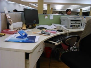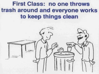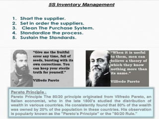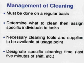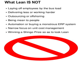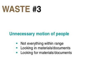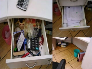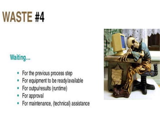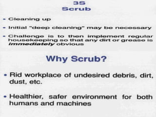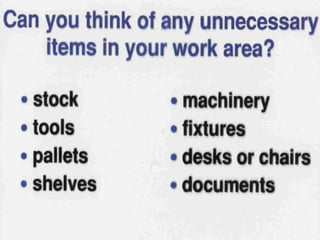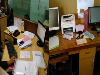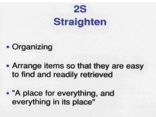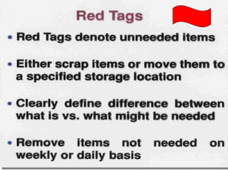 This document discusses Lean management principles and implementing 5S (Sort, Set in Order, Shine, Standardize, Sustain) in the workplace. It provides examples of applying 5S to organize workstations, documents/items, and computers. Implementing 5S brings benefits like reducing search time, faster response times, and a safer work environment. The document encourages readers to be change agents and help implement 5S in their departments through activities like developing a 5S directory and coordinating the sorting process.