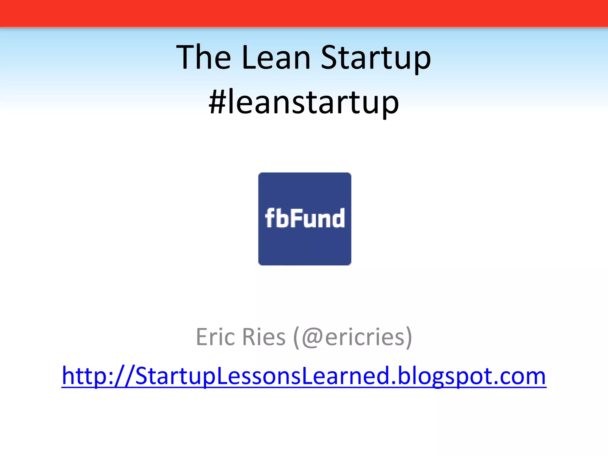 The document discusses the Lean Startup methodology for building startups with a focus on minimizing risk through continuous experimentation and customer feedback. It outlines some key principles of the Lean Startup approach, including conducting customer development to test hypotheses, developing products through small batches and continuous deployment, using A/B testing and metrics to validate learning, and applying root cause analysis through the Five Whys technique. The overall goal is to shorten feedback loops and learn faster in order to accelerate progress and reduce the risk of failure that plagues many startups.