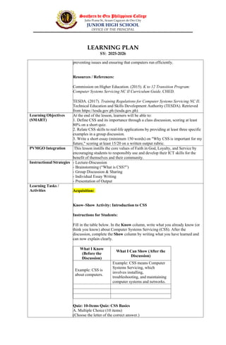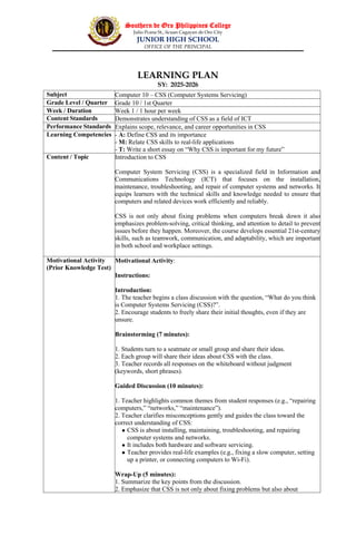 Subject Computer 10 – CSS (Computer Systems Servicing)