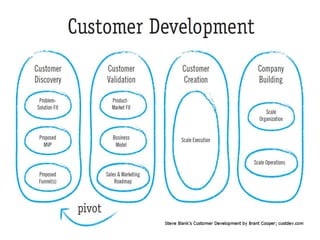 This document provides an overview of the Lean Startup methodology. It discusses key concepts like Minimum Viable Product (MVP), the Build-Measure-Learn loop, and Customer Development. Examples are given of startups like Dropbox and Peernuts that used Lean Startup principles to test ideas quickly and iteratively before building full products. The document warns against common startup failures like building too many features without customer feedback. It advocates starting simply to test assumptions and get feedback early in the development process.