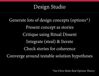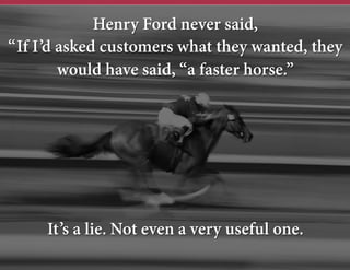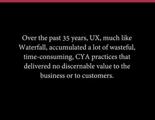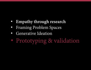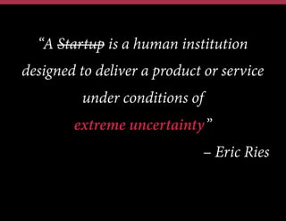 1. The document discusses Lean Startup and Lean UX methodologies for product development under conditions of uncertainty. It emphasizes starting with customer development and validating hypotheses through iterative testing of prototypes.