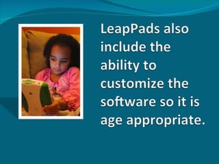 The document appears to be a paper about the LeapPad, a tablet made by LeapFrog for young children. It includes images of the LeapPad, discusses its availability for purchase in retail stores or through special classroom packages online. It also includes a bibliography of three sources about the LeapPad.