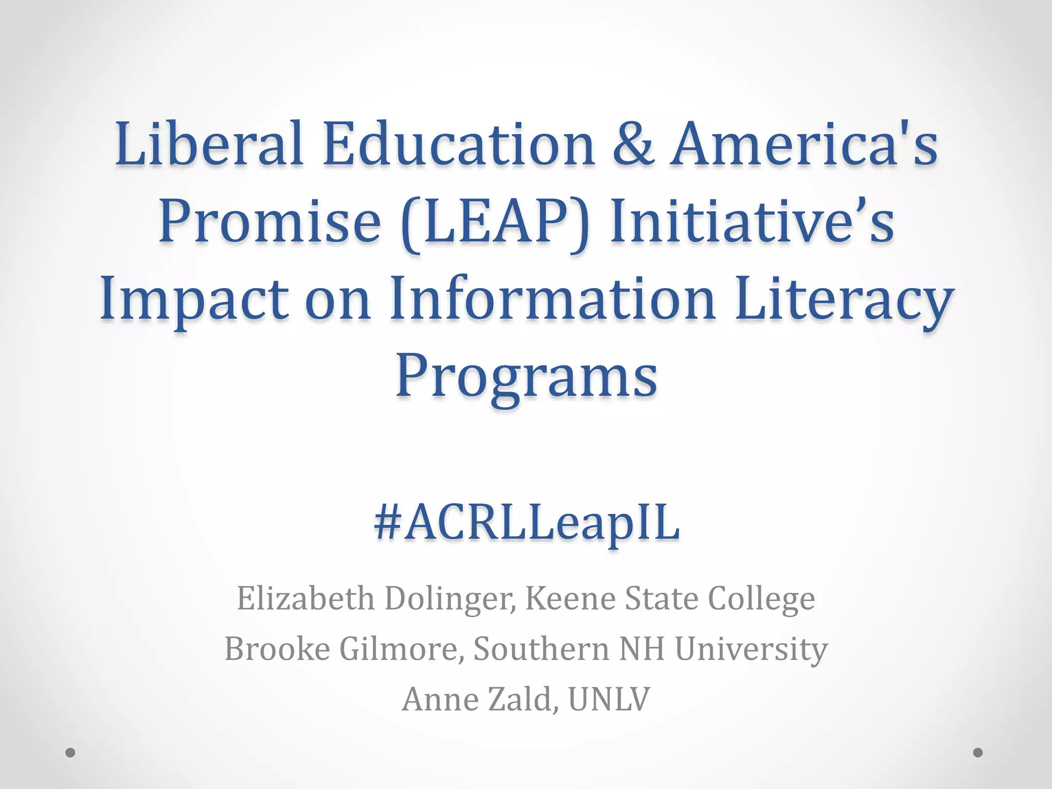 The LEAP initiative aims to promote liberal education and enhance information literacy programs in higher education, focusing on skills employers value, such as communication and critical thinking. A survey of librarians revealed varying levels of awareness and involvement in integrating information literacy into general education curricula. Overall, the initiative has influenced teaching practices and encouraged librarians to take a more active role in program development and reform.