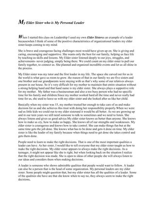 1) The author describes their elder sister as their personal leader who helped care for their family from a young age due to their parents' busy schedules.