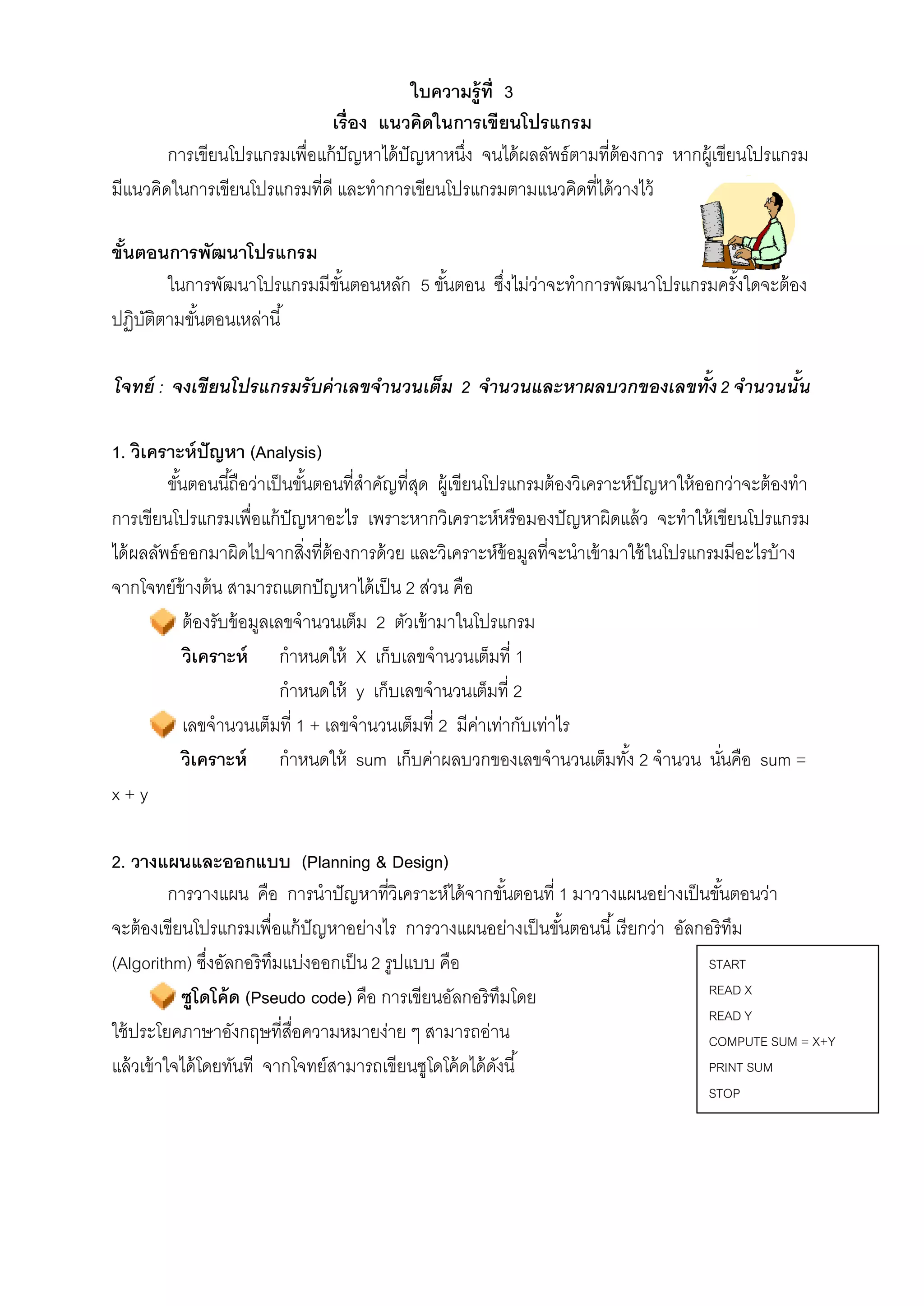 หากนาโปรแกรม มาพิจารณา จะพบว่าการเขียนโปรแกรมมีขนตอนเป็นไปตามขันตอนของ