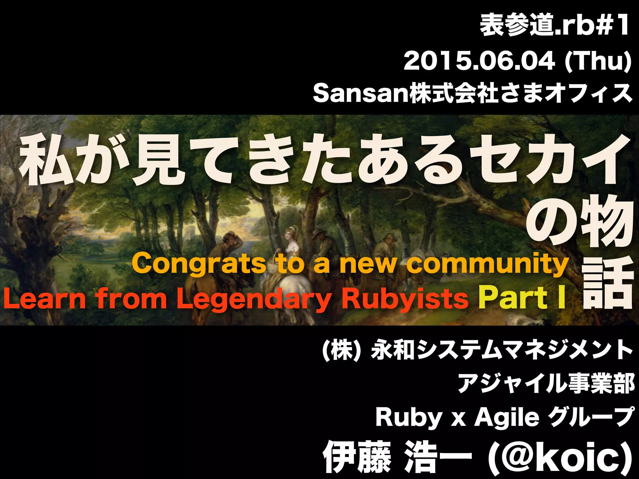 Agile グループ 伊藤 浩一 (@koic) 2015.06.04 (Thu) 表参道.rb#1 Sansan株式会社さまオフィス Learn from Legendary Rubyists Part I Congrats to a new community