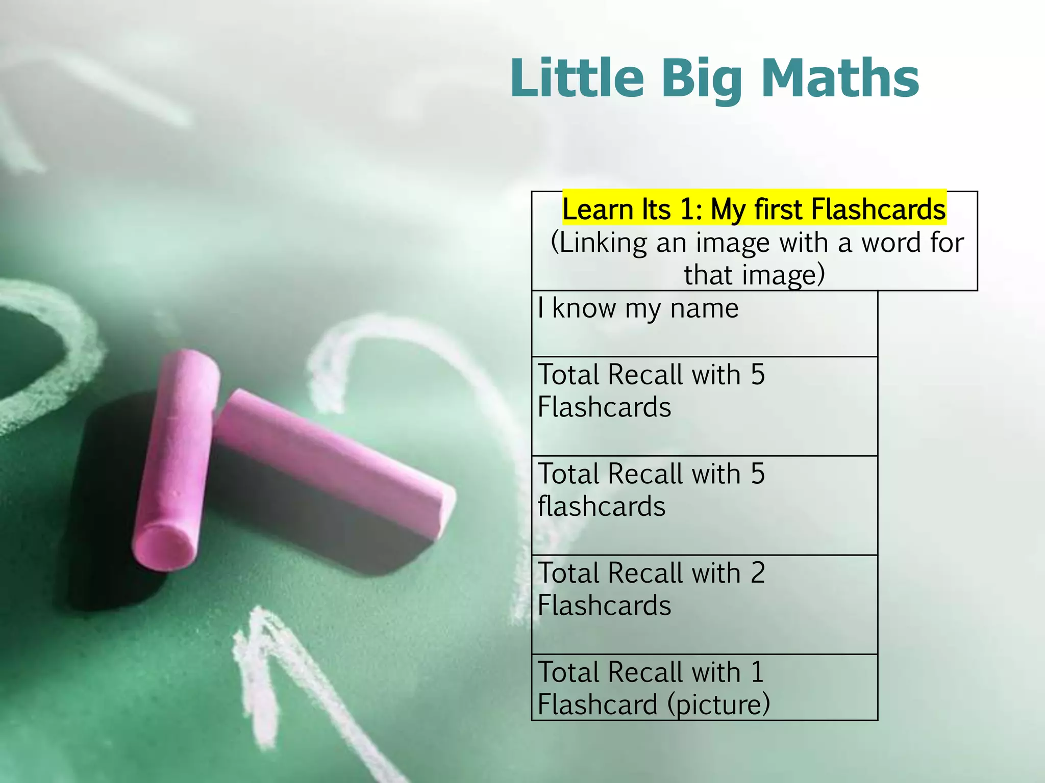 This document describes a child's learning of flashcards through an educational app called Little Big Maths. The child is introduced to flashcards that pair images with words and is able to recall the images when shown increasing numbers of flashcards, from 5 down to 1, building their ability to remember associations through interactive learning activities.
