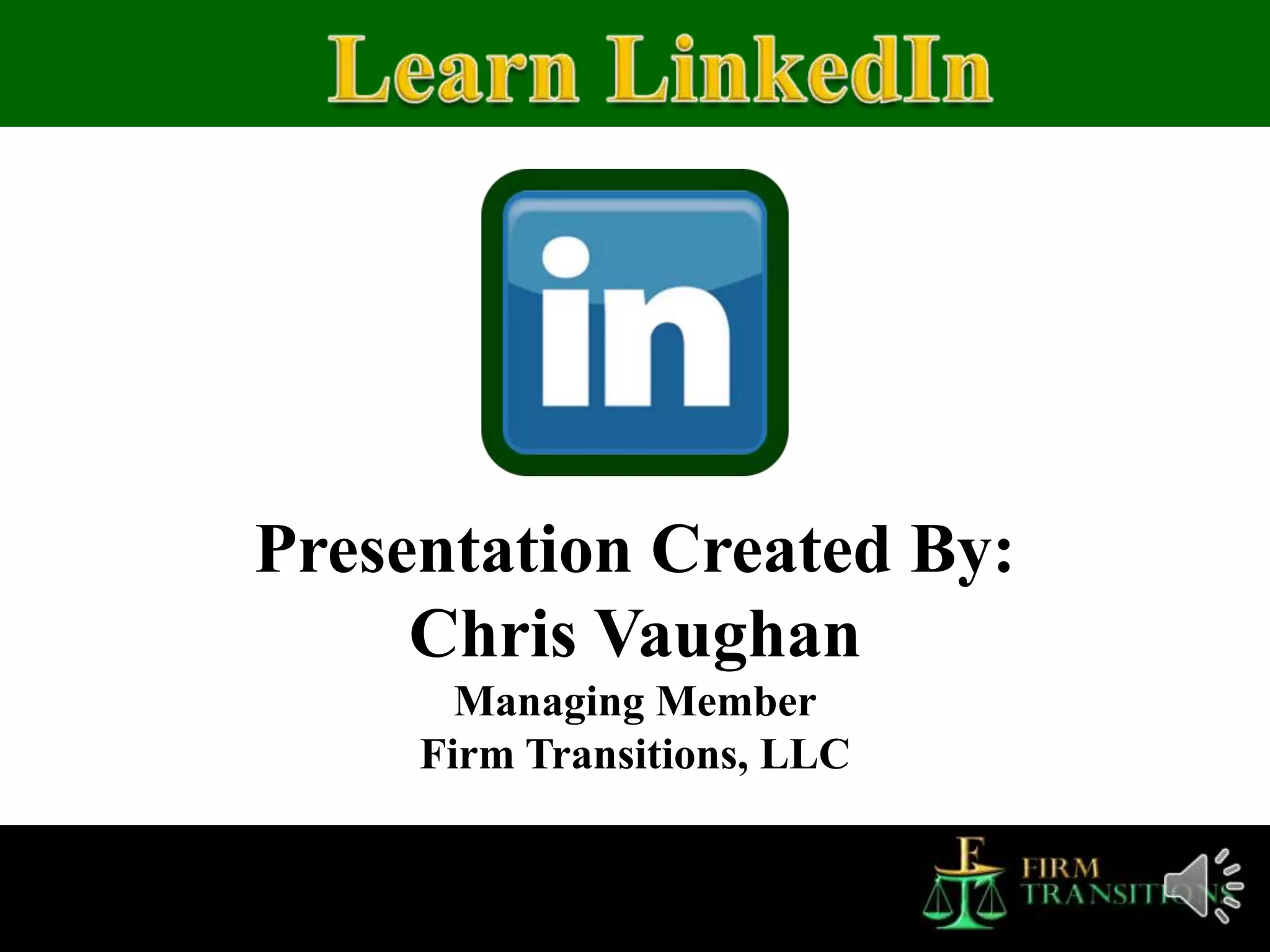 The document presents an overview of LinkedIn, emphasizing its growth to over 200 million members globally and its establishment as a professional networking platform since going public in 2011. It highlights the advantages and disadvantages of using LinkedIn for networking, job seeking, and building professional relationships, while providing tips on optimizing profiles and engaging with groups. Contact information for Chris Vaughan, the creator of the presentation, is also included.