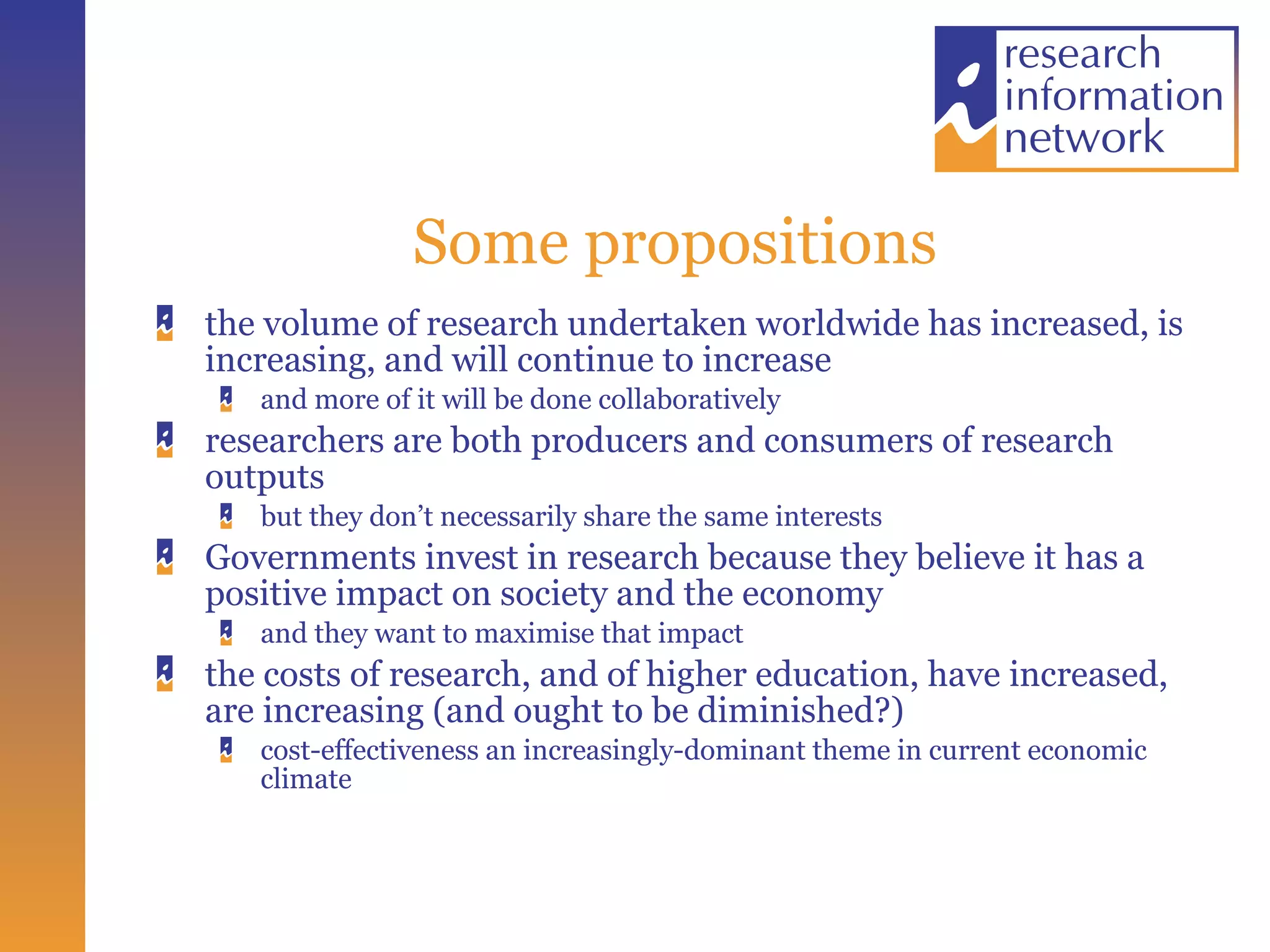 This document summarizes the key challenges in understanding researchers' behaviors and needs regarding information for their work. It discusses how the volume of research is increasing yet costs are rising, placing more importance on cost-effectiveness. It also examines researchers' information gathering process, the types of content and services they require, and who provides these resources, with questions around sustainability. Skills development is another area explored in terms of user needs and who provides training. In conclusion, more understanding is still needed around digital information use while balancing constraints on funding with growing research volumes.