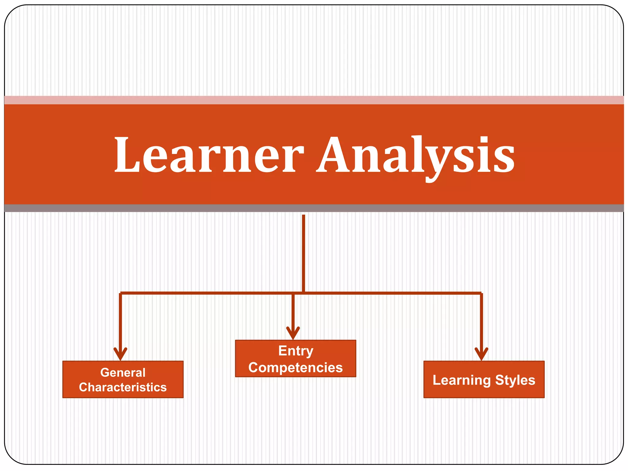 This document discusses a learner analysis for a fifth grade student from a middle to low socioeconomic status family. The student has basic computer skills and understands academic expectations, enjoys using computers for research, and is interested in self-improvement. Supportive parents help the student meet academic standards.
