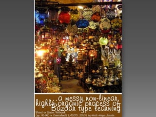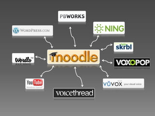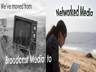 The document discusses the EFL e-learning classroom and highlights learner-generated digital productions. It summarizes how students used various online tools like Moodle, Skype, blogs and wikis to create and share content. By utilizing these tools, students moved away from the traditional "broadcast model" of education and toward more decentralized, interactive and student-centered production and belonging in the online classroom.