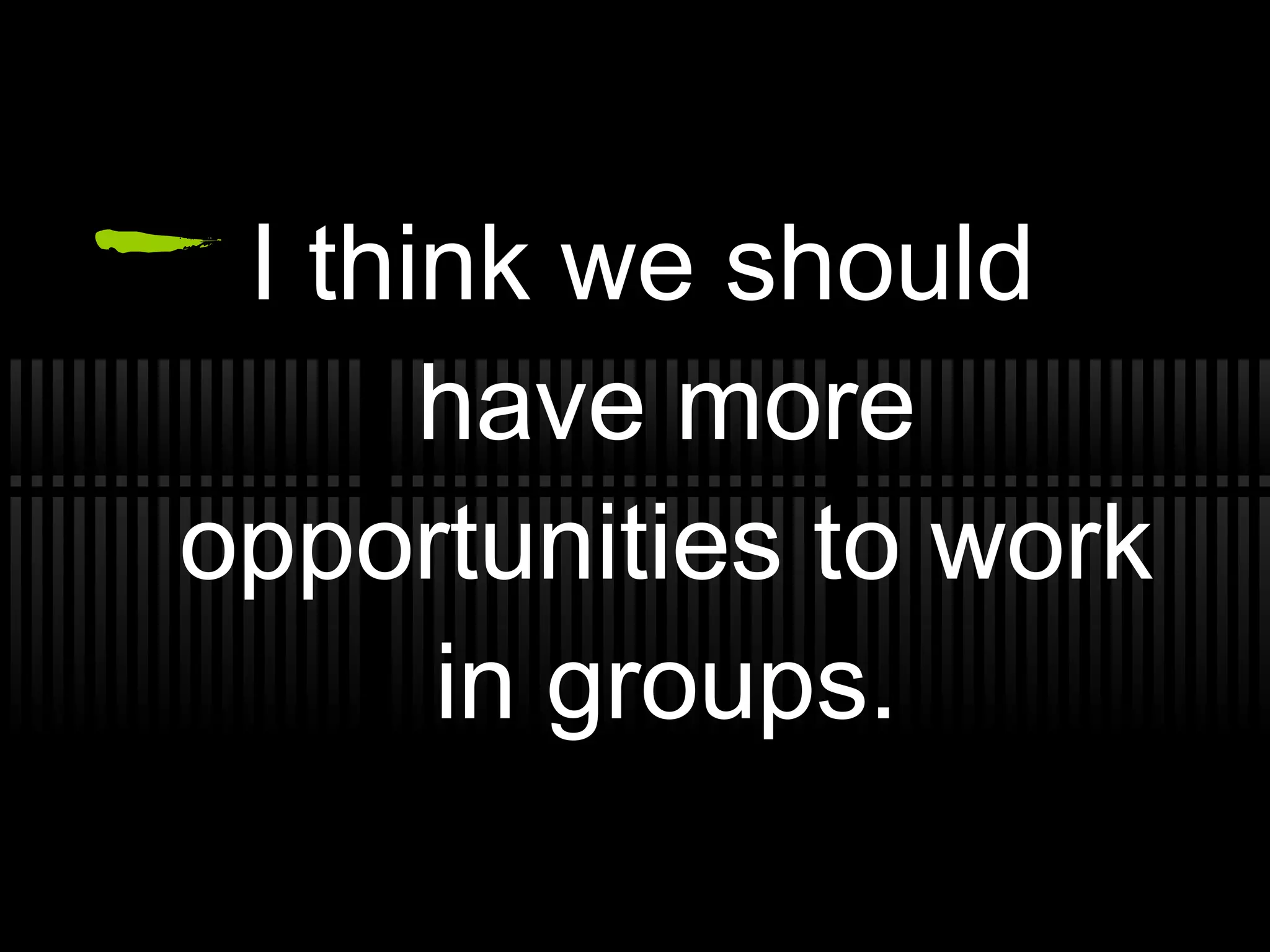 The document contains opinions from multiple students on their preferences for working independently versus in groups, presenting work using computers, types of writing activities they enjoy, and suggestions for classroom activities and structure. Several students expressed enjoying both independent work and working in pairs or groups depending on the task. Many students also commented on disliking repetitive instructions or being told what to write about.