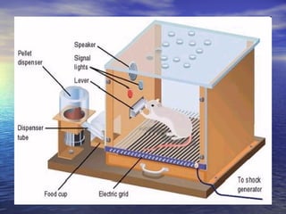 This document defines and discusses different types of learning including trial and error learning, insight learning, imitation/observation, and cognitive learning. It also covers classical and operant conditioning, including definitions of key concepts like unconditioned stimulus, conditioned stimulus, unconditioned response, and conditioned response. Factors that influence learning are discussed, including motivation, reward and punishment, interest, group participation, familiarity, meaningfulness, and amount of material.