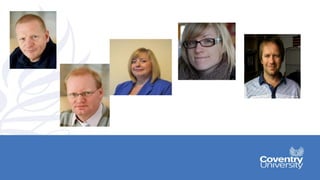 This document summarizes a study conducted by staff and students at Coventry University on their experience with a blended learning approach using a MOOC. The study involved staff and students taking an online MOOC on language learning and teaching while also participating in weekly reflective discussions. Key findings included that the MOOC provided a global learning community but lacked teacher scaffolding and substantive discussion. Students found the accessibility and exposure to different perspectives valuable, but noted issues like lack of assessment and repetition. Overall, the study found that a structured blended approach with an online component can work, but proprietary systems may better suit academic settings due to motivators like assessment and the need for teacher support.