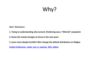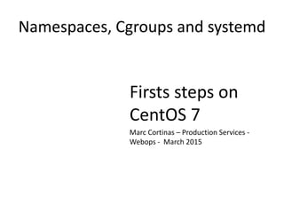 Namespaces, Cgroups and systemd document discusses: