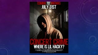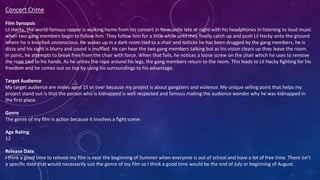 The document provides details about a marketing campaign for a fictional film called "Concert Crime". It includes: