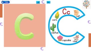 The document introduces alphabets as the letters from 'aa' to 'zz' used to form sentences and words. It provides a list of capital and small alphabets along with pictures and a reference to an educational video about alphabets. The content is aimed at teaching the alphabet through visual aids.