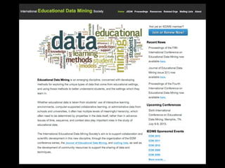 1) The document discusses learning analytics, which is about collecting data traces that learners leave behind from online activities and using that data to improve learning.