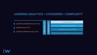 The document discusses the importance of learning analytics in improving organizational learning and performance. It highlights the challenges of measuring learning impact and outlines a step-by-step approach for organizations to gather, understand, and operationalize their data effectively. It also emphasizes the role of technology, such as xAPI and learning record stores, in creating a comprehensive and effective learning ecosystem.