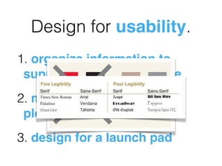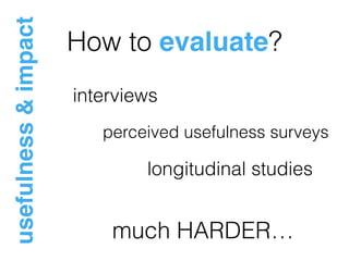 This document discusses learning analytics dashboards and how to design them effectively. It provides examples of existing learning analytics dashboards such as SNAPP, GISMO, and the Student Activity Meter. Common issues with dashboards are outlined, such as having too many screens, inadequate data context, and poor visualizations. The document recommends designing dashboards by reducing non-data elements, enhancing data visualization, and organizing information to support its intended meaning and use.