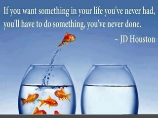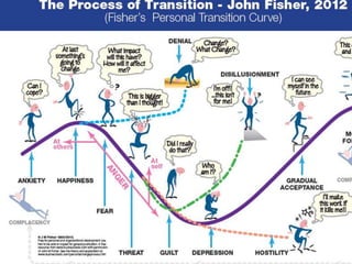 This document discusses the stages of change that adult learners experience when acquiring a new language or skill. It identifies 8 stages: 1) Anxiety about coping with something new, 2) Happiness when help is available, 3) Fear of not being accepted or understanding, 4) Threat to existing beliefs and skills, 5) Guilt over not knowing, 6) Depression from feeling overwhelmed, 7) Gradual acceptance as progress is made, and 8) Moving forward with increased confidence from practice and success. Adult learners may experience language anxiety due to seeing education as something for children or challenges to existing beliefs, but change and dissatisfaction can motivate learning.
