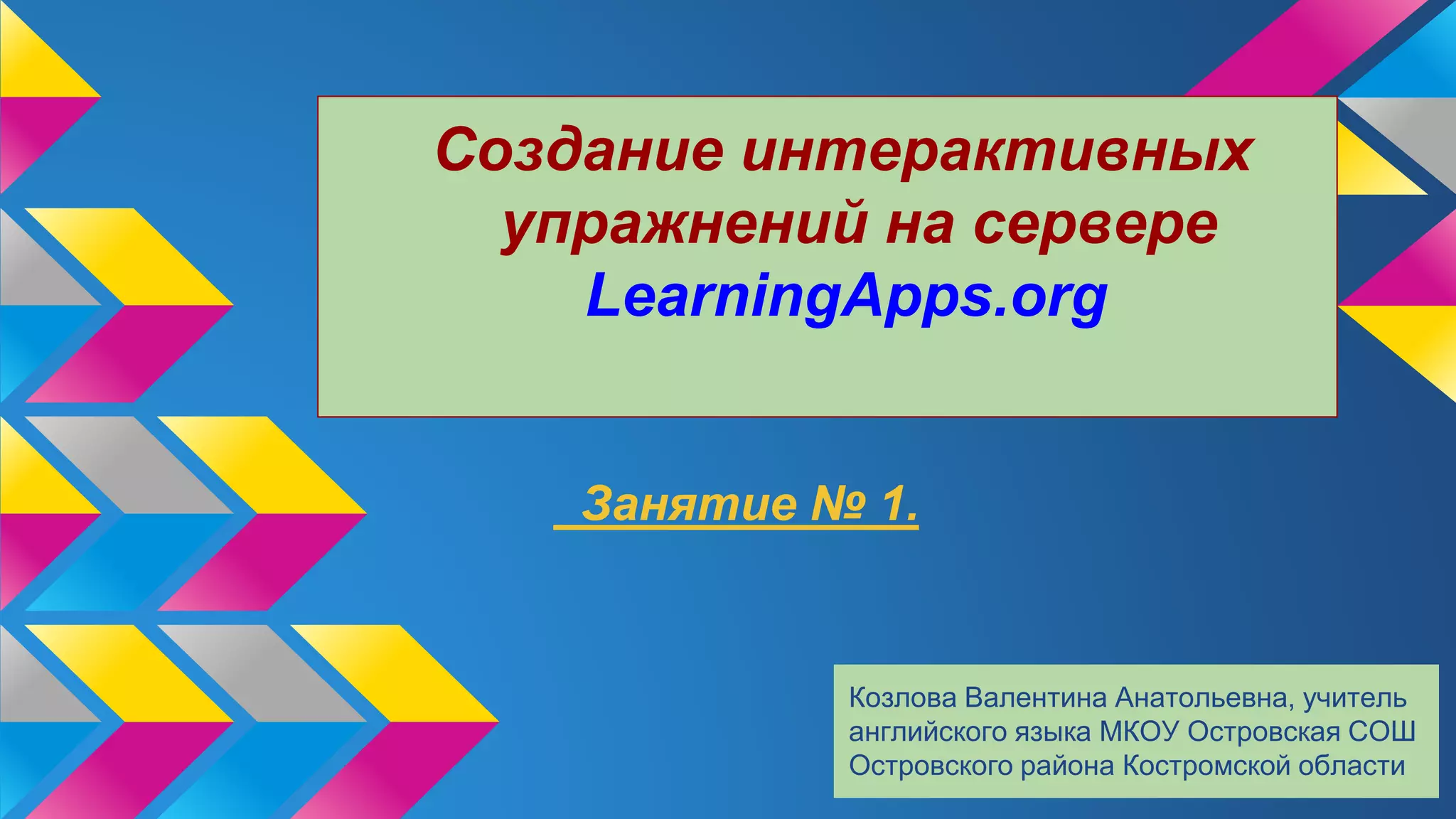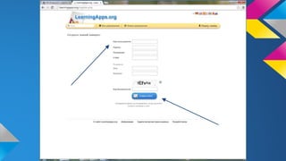 Документ содержит учебное занятие, посвященное использованию сервиса learningapps.org для создания интерактивных упражнений. В частности, обсуждаются шаги по регистрации на сайте и знакомству с его контентом, а также выполнение практического задания с отметкой о выполнении на форуме. Автор документа - учитель английского языка Валентина Анатольевна Козлова.