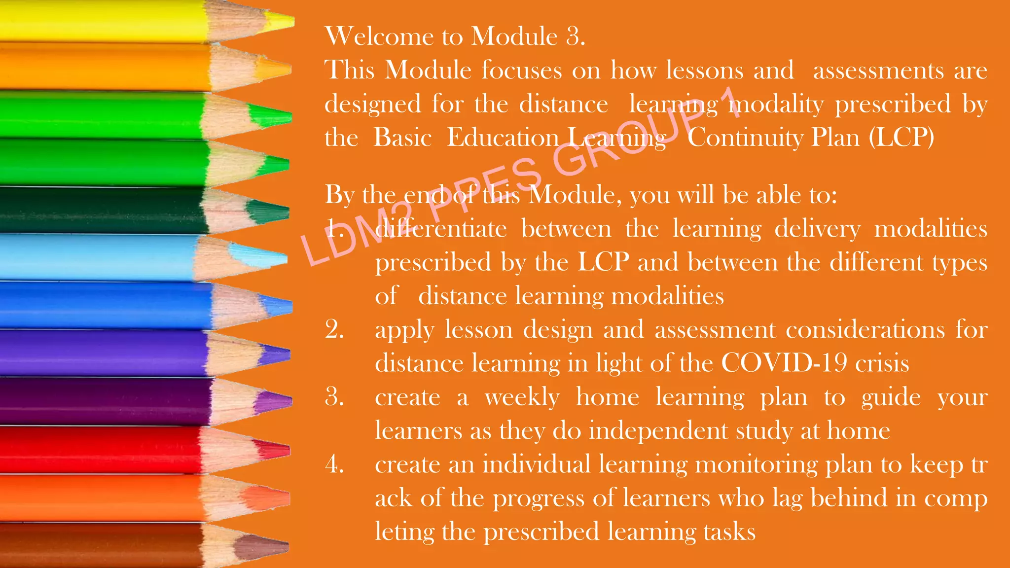 3. Guiding and Monitoring Learners in Distance Learning - This lesson focuses on creating a weekly home learning plan and individual learning monitoring plans to track student progress.