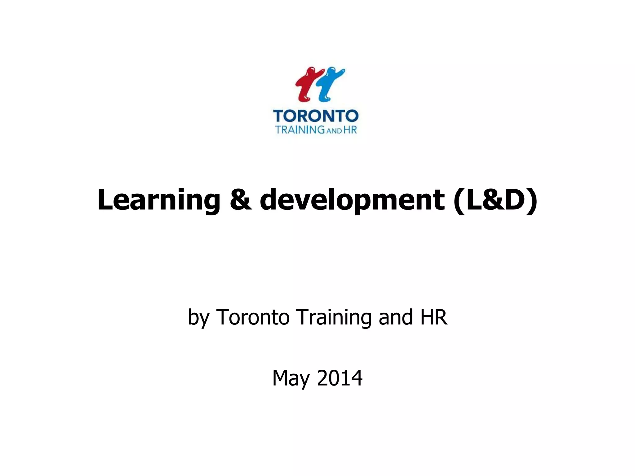 The document outlines the various aspects of learning and development (L&D) and is structured into sections including types of attendees, risk management, knowledge management, and initiatives for promoting informal learning. It emphasizes the importance of a learner-centered approach, informal learning, and the integration of technology such as MOOCs and game-based learning in training. Additionally, it explores the skills required for L&D leaders and strategies for maximizing learning investments and measuring success.