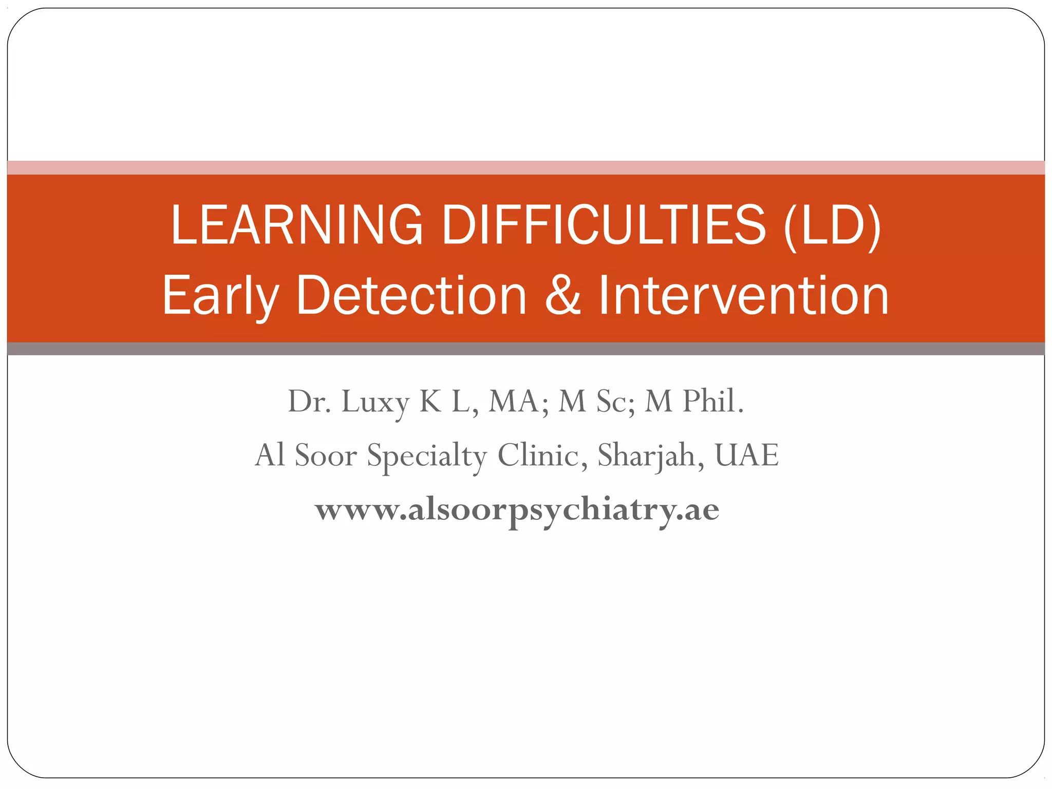 This document discusses learning difficulties (LD) such as dyslexia, dysgraphia, and dyscalculia. It notes that LD affects up to 1 in 5 children and is often genetic. Children with LD have average or above average intelligence but struggle academically. Early detection and intervention are important to help children develop strategies to overcome their LD. Assessment by a psychologist can establish eligibility for academic support. LD management may also involve treating associated disorders and providing accommodations in school. Remedial training, parental support, and focusing on a child's strengths can help boost their self-esteem and long-term success.