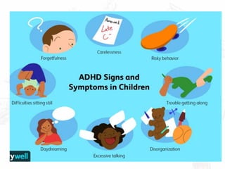 Learning disabilities are neurologically-based disorders that can affect reading, writing, math, organization, memory, and other skills. They are not due to intellectual disabilities or lack of motivation, but rather difficulties with specific information processing deficits. Common learning disabilities include dyslexia, dysgraphia, and dyscalculia. Treatment involves identifying individual strengths and weaknesses, providing classroom accommodations, and utilizing multidisciplinary support from educators, medical professionals, and family. While learning disabilities cannot be cured, early intervention and appropriate strategies can help those affected achieve success.