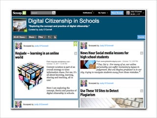 The document discusses the evolution of technology and its impact on learning, emphasizing the shift towards a connected and collaborative digital environment. It highlights the need for students to adapt their information-seeking strategies in an era dominated by internet-connected devices and big data. The author calls for a focus on enhancing critical thinking and information literacy skills as technology transforms education and research processes.