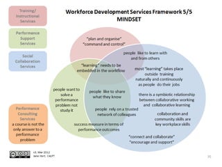 The document discusses the impact of social media and tools on individual and organizational learning and performance. It highlights how smart workers leverage social tools for continuous learning and problem-solving, and outlines a framework for integrating social collaboration in organizations. It emphasizes the importance of cultivating a collaborative environment and adopting a mindset that views social interaction as essential to workplace success.