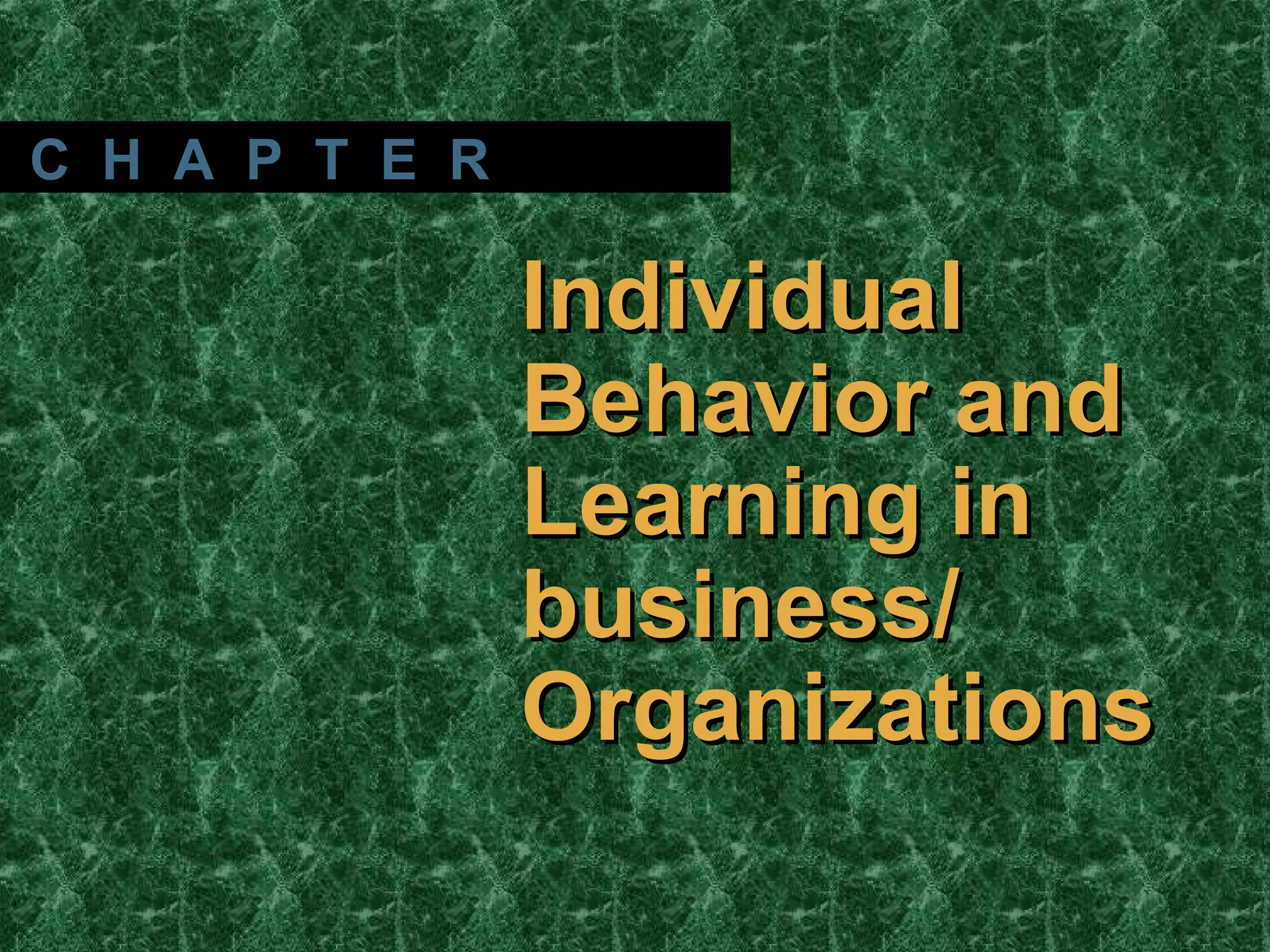 The document discusses factors that influence individual behavior and learning in organizations. It presents the MARS model which describes how motivation, ability, role perceptions, and situational factors influence individual behavior and performance. It also discusses theories of behavior modification, feedback, social learning, experiential learning models, and developing a learning orientation in organizations. Action learning is presented as an experiential learning approach where employees work in teams to solve real organizational problems.