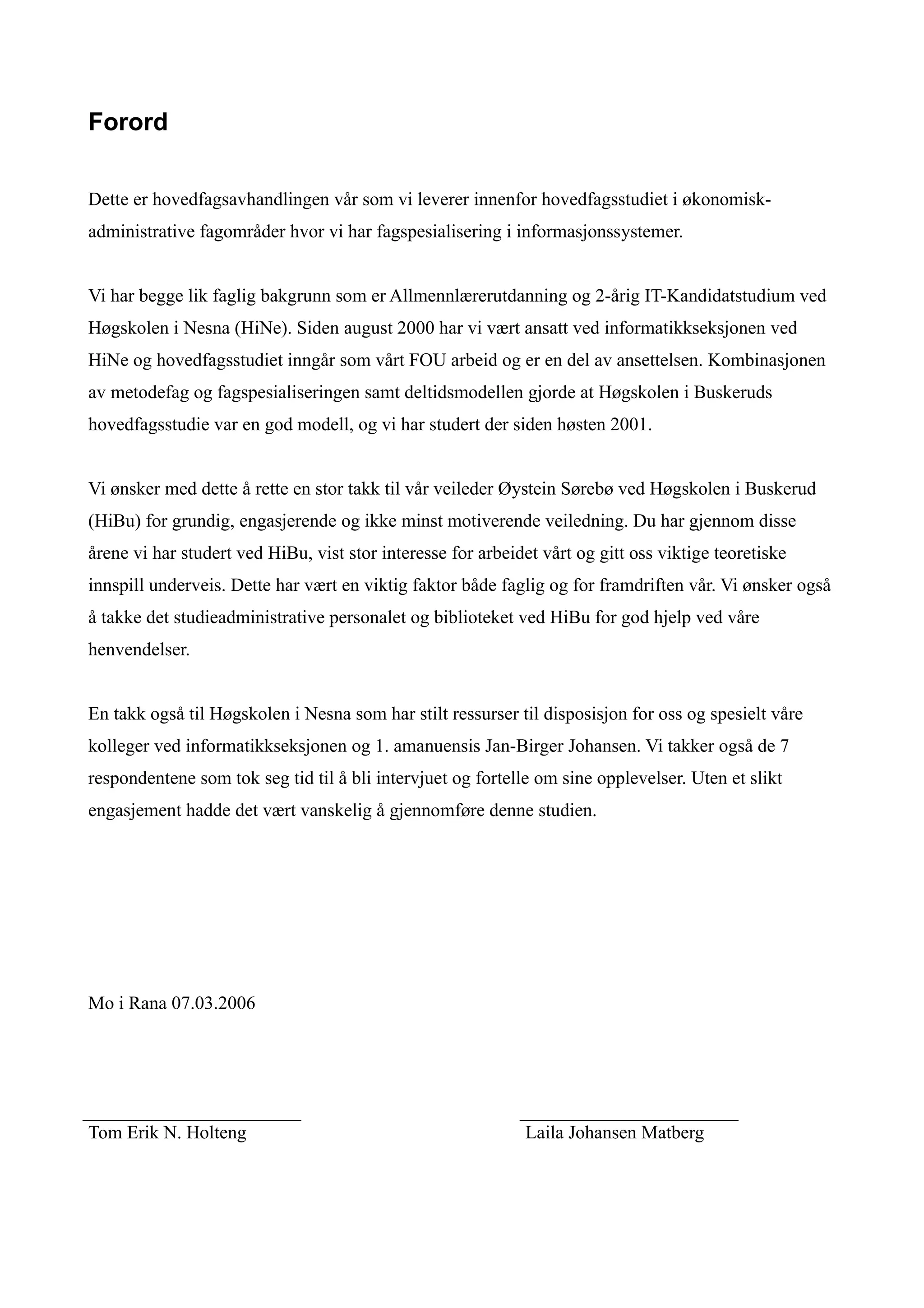 En takk også til Høgskolen i Nesna som har stilt ressurser til disposisjon for oss og spesielt våre