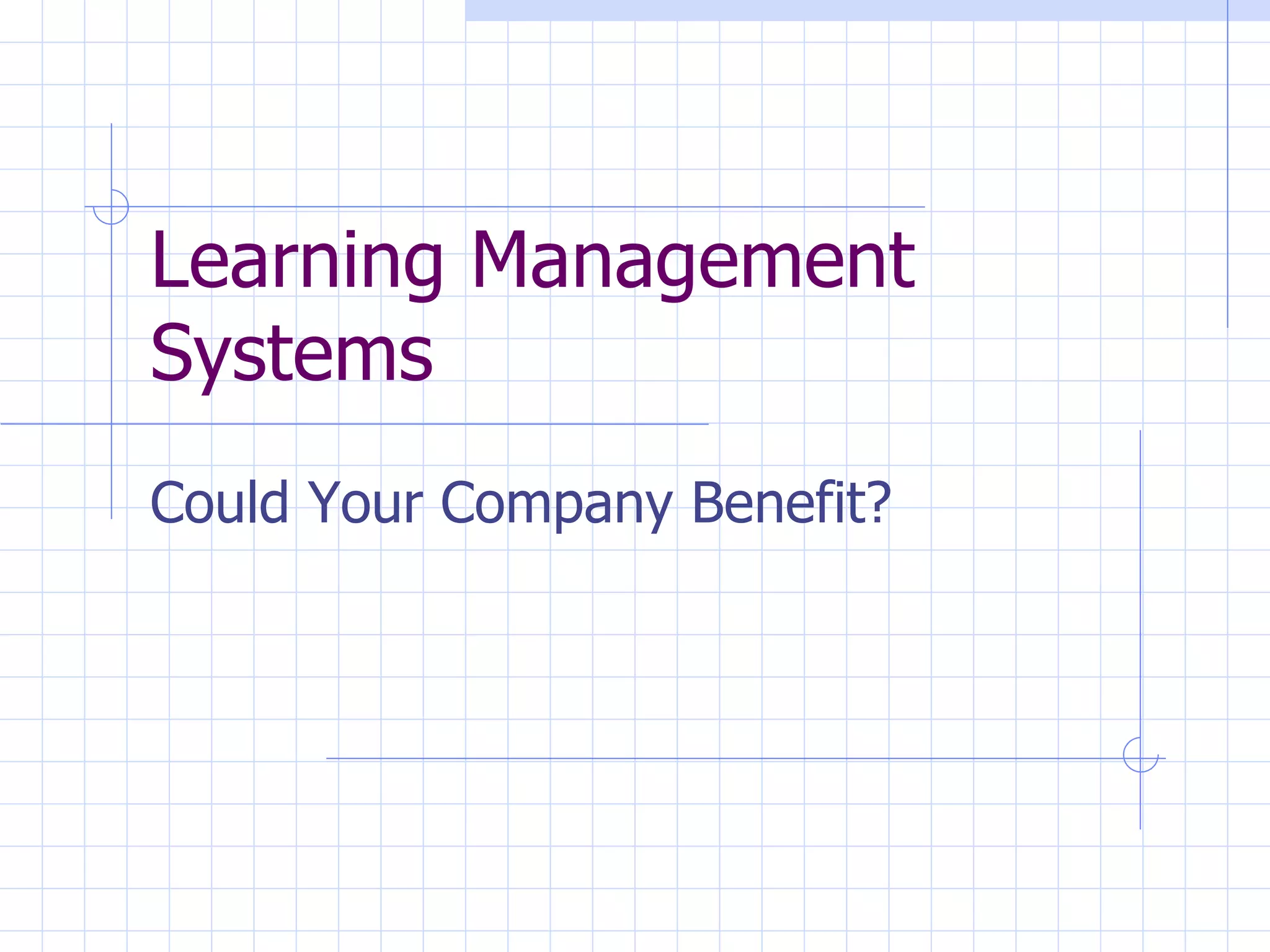 Learning Management Systems (LMS) are software applications that help manage the delivery and tracking of e-learning. LMS systems allow organizations to automate the administration of online training programs, from user registration and course enrollment to tracking completion and reporting results. LMS platforms provide a central place for students to access assigned courses, view completed trainings, and check test scores. They also reduce administrative workload by automating tasks like administering tests, checking prerequisites, and booking travel. While LMS systems streamline online training programs, implementing one requires a large investment and should only be undertaken after thorough research and consultation with an LMS expert.