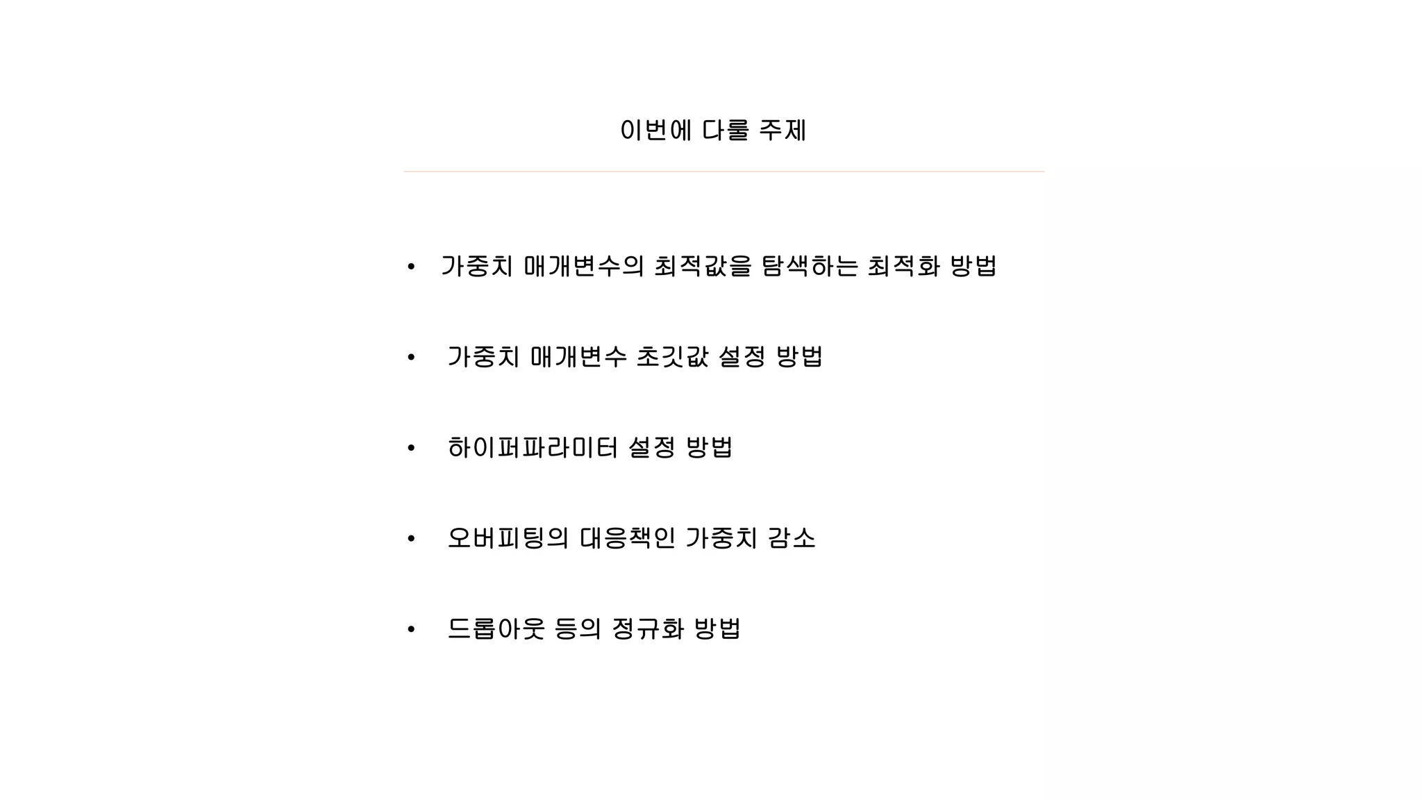 오버피팅을 억제해 범용 성능을 높이는 가중치 감소(Weight decay) 기법을 소개한다.