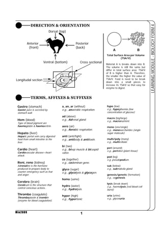 This document provides a learning module on biology for Form 4 students. It includes information on cell structure and organization, movement of substances into and out of cells, and the basic chemical components of living things like carbohydrates, proteins, lipids, and nucleic acids. Diagrams and tables are included to illustrate topics like organelle functions, osmosis, and the structures of biological molecules. The module aims to explain key concepts in biology and provide students with definitions, examples, and practice questions to enhance their understanding.
