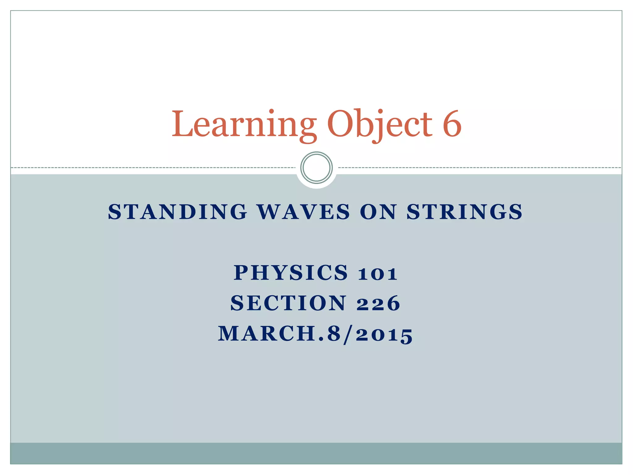 1) A standing wave is formed by the interference of two waves traveling in opposite directions with the same amplitude, frequency, and wavelength.
