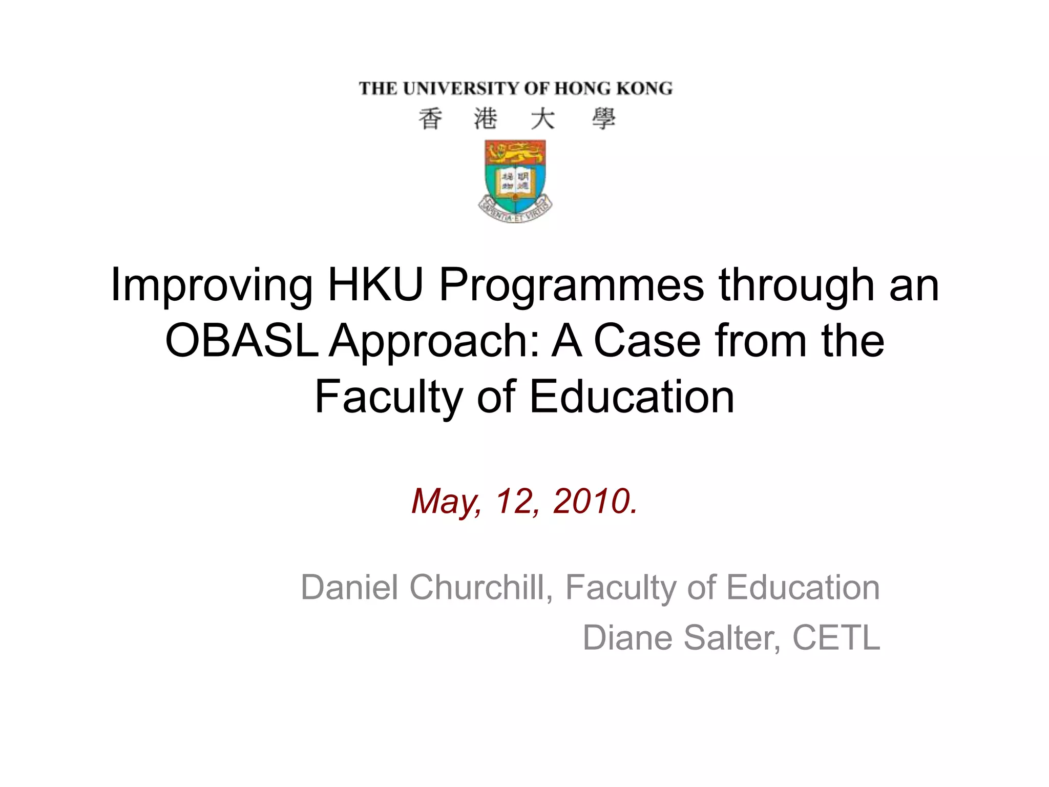 The document discusses a case study from the Faculty of Education at HKU, focusing on improving academic programs through an Outcomes-Based Approach to Student Learning (OBASL). Key elements include defining program learning outcomes, aligning teaching activities and assessments, and the collaborative roles within faculty and teams to enhance student learning experiences. It emphasizes the importance of strategic planning, consultation, and iterative evaluation in curriculum development to meet current educational needs and expectations.