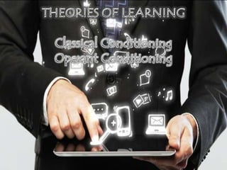 Learning is a relatively permanent change in behavior or knowledge due to experience. Behavioral changes can be due to learning or other causes like drugs, injury, or maturation. Learning starts with the mind accepting new knowledge which may or may not result in observable behavior changes. There are two main types of learning: classical conditioning where a neutral stimulus becomes associated with an original stimulus and response, and operant conditioning where people learn through reinforcement of pleasurable or avoidance of unpleasurable outcomes from behaviors. Perception involves how people interpret and make sense of their environment and is influenced by their experiences, motives, personality, and situational factors.