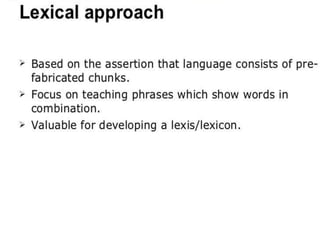English is learned through both guided practice and authentic communication. Guided practice is teacher-controlled and focuses on analyzing language one element at a time, with closed questions that have a single right answer and an emphasis on accuracy. Authentic communication is learner-controlled, considers whole concepts at once in a real-life way, uses open-ended questions without single answers, and focuses on fluency. Developing communicative competence involves the ability to use English appropriately for different situations, purposes and relationships between participants.