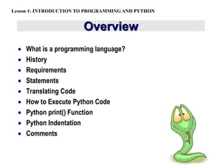 Lesson 1: INTRODUCTION TO PROGRAMMING AND PYTHON