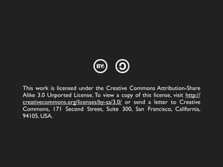 This document discusses copyright and open content licenses for learning resources. It explains that educational use of copyrighted materials is permitted in moderate amounts under fair use provisions. For broader distribution or adaptation, author permission is required. Creative Commons licenses are then described, including the Attribution, Attribution-ShareAlike, Attribution-NonCommercial, and Attribution-NonCommercial-ShareAlike variants. The document outlines the freedoms and conditions of each license type. It provides examples of open content sources and stresses the importance of properly attributing and referencing open educational resources.