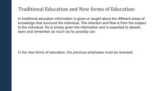 The document discusses the differences between traditional education and modern learning strategies, emphasizing the importance of personalizing learning approaches to individual needs. Key strategies include using mind maps, graphic organizers, and creating mental images to enhance comprehension and recall. It also highlights the significance of developing good habits in language learning, such as practicing pronunciation and understanding intonation patterns.