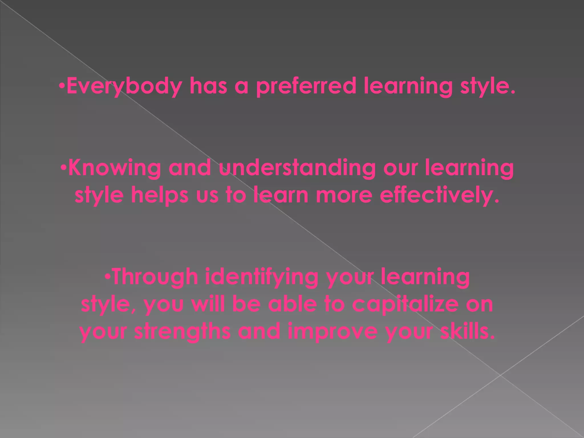 This document discusses learning styles and provides characteristics and strategies for three main learning styles: visual, auditory, and tactile/kinesthetic. Visual learners benefit from seeing information presented visually through pictures, diagrams, and color. Auditory learners prefer listening to lectures and talking through information. Tactile/kinesthetic learners learn best through hands-on activities and physical movement. The document provides tips for how learners can capitalize on their individual strengths based on their preferred learning style.