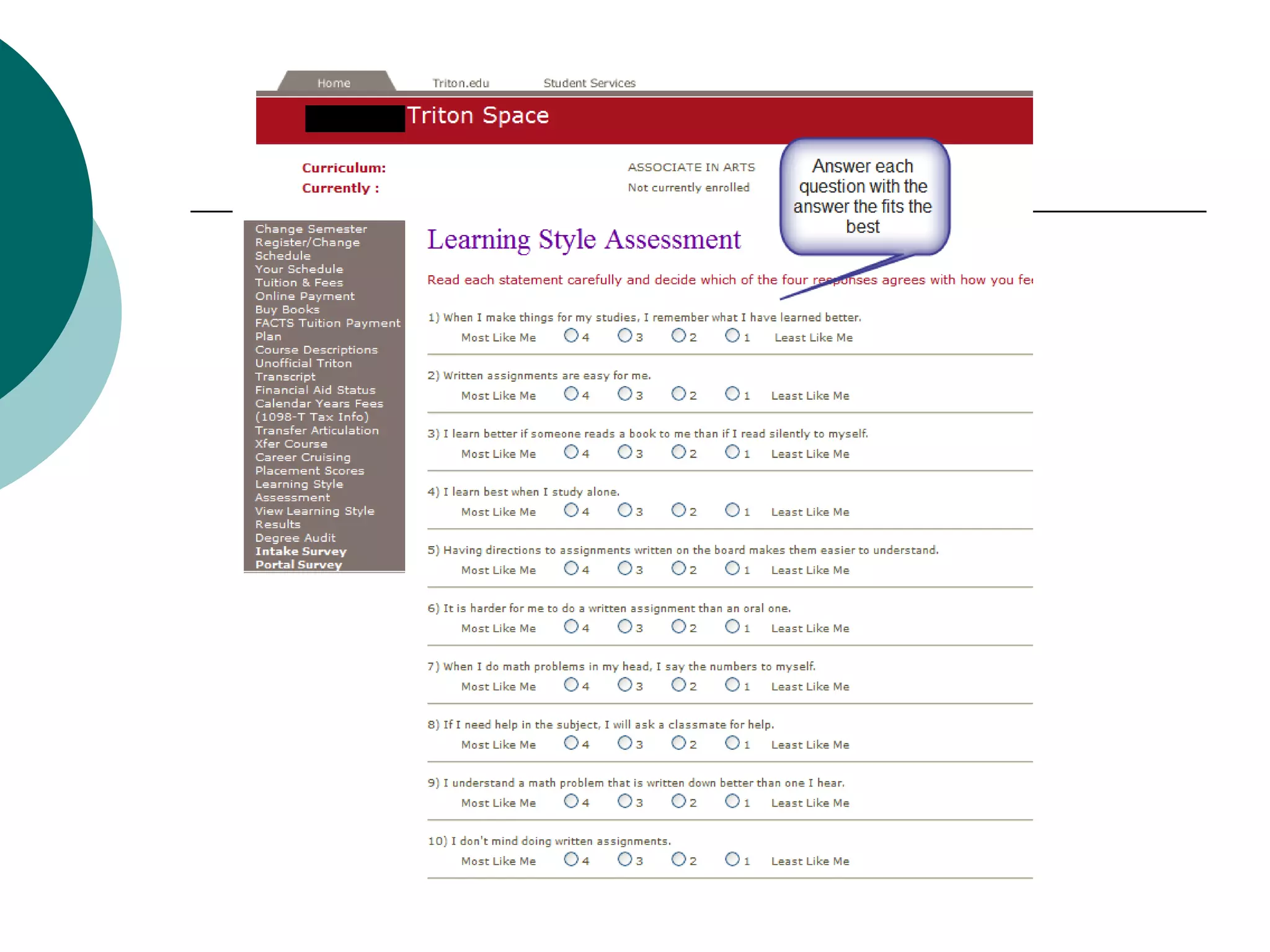 The document discusses different learning styles and how to identify your preferred style using a Learning Styles Inventory. It describes the major categories of learning styles - visual, auditory, kinesthetic - and provides examples of how each style learns best. It also discusses preferences for working individually versus in a group, and preferences for taking in and expressing information orally versus through writing. The Learning Styles Inventory can help you understand how you learn most effectively to improve your studying.
