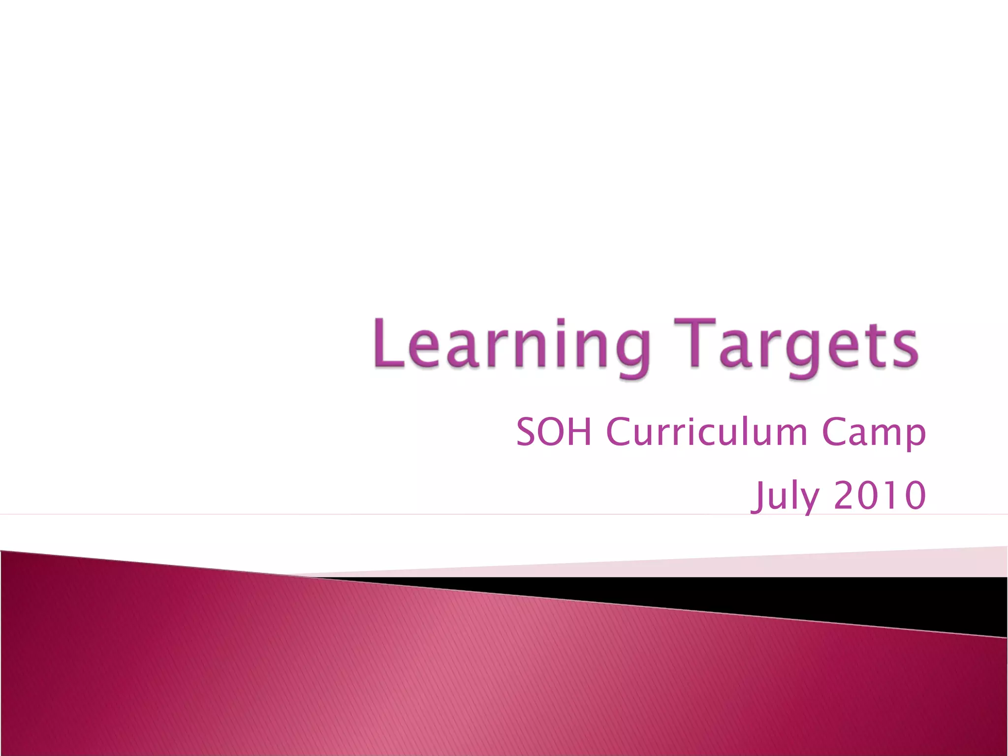 The document discusses the importance of using learning targets to maximize student learning and raise test scores. It defines key terms like content standards, learning targets, and concepts. Effective lessons are built around clear learning targets that ensure students learn specific concepts and skills rather than just completing worksheets. Examples of well-written learning targets are provided, along with guidance on developing targets aligned to grade-level standards and assessing student understanding of the targets.