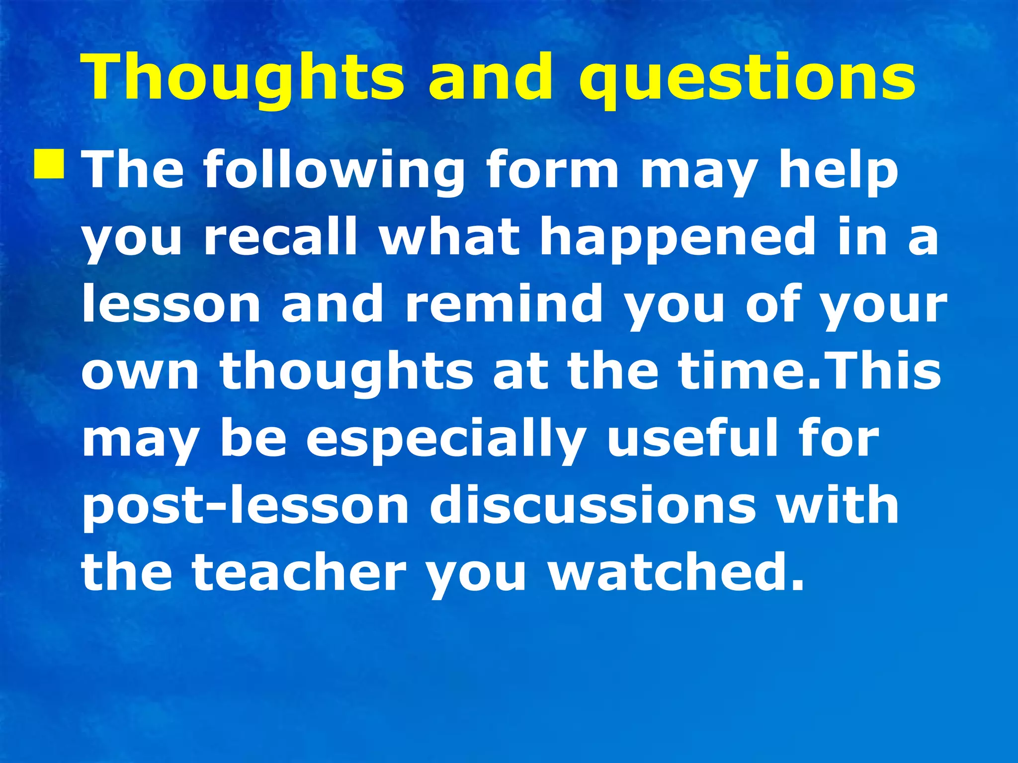 This document provides guidance and templates for observation tasks during an English teaching lesson. It includes forms for recalling thoughts during the lesson, noting things noticed and questions had. It also includes a template for "stealing" teaching skills and techniques from the observed teacher. Finally, it provides a "jargon bank" defining common terms used in English language teaching.