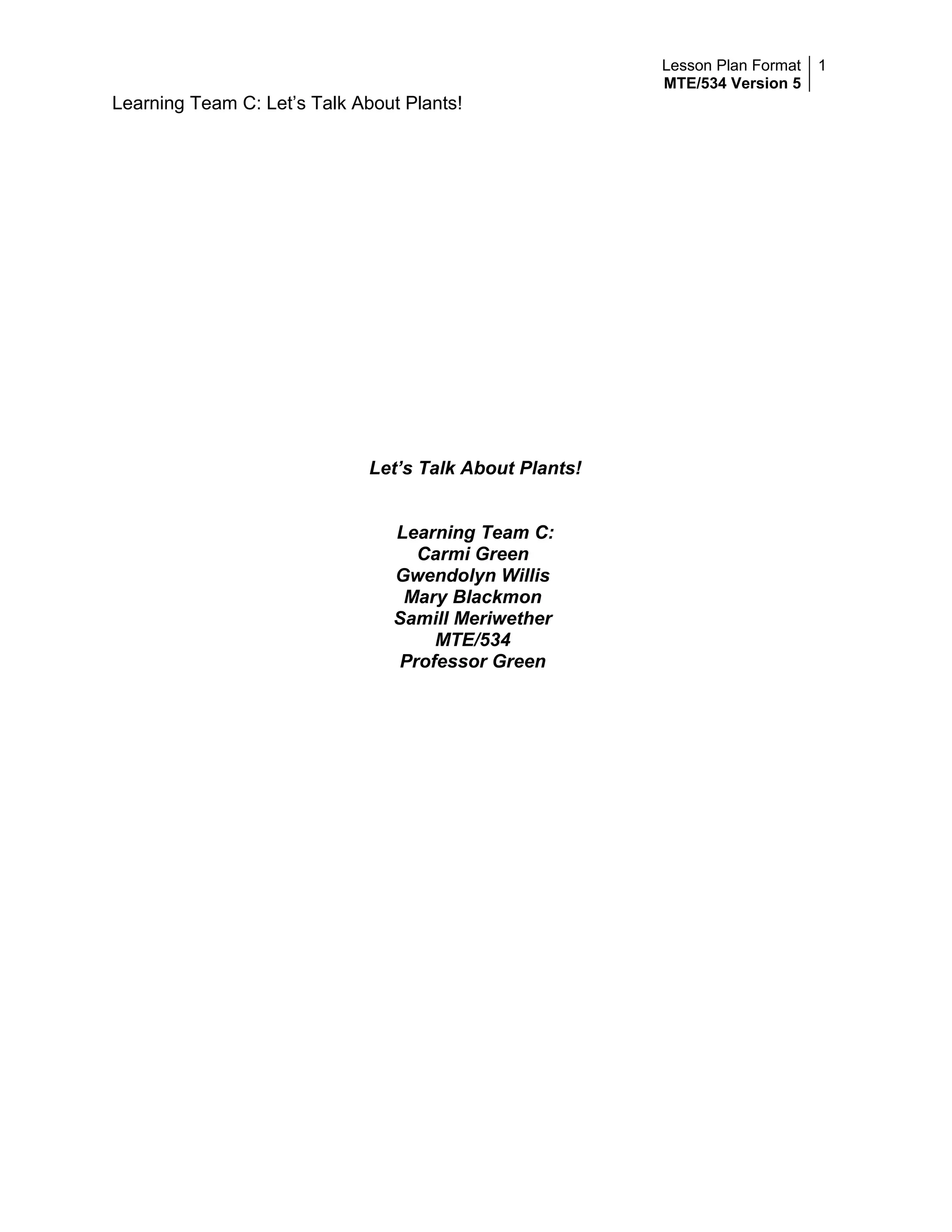 This lesson plan focuses on teaching first grade students about how plants change during their life cycle. Over the course of a week, students will participate in sorting games and create performances to learn the stages of a plant's development from seed to adult. They will be assessed through exit tickets and group assessments. The lesson integrates science and visual art standards and provides opportunities for collaboration through exploration and imaginative play with materials. Accommodations are included for diverse learners.
